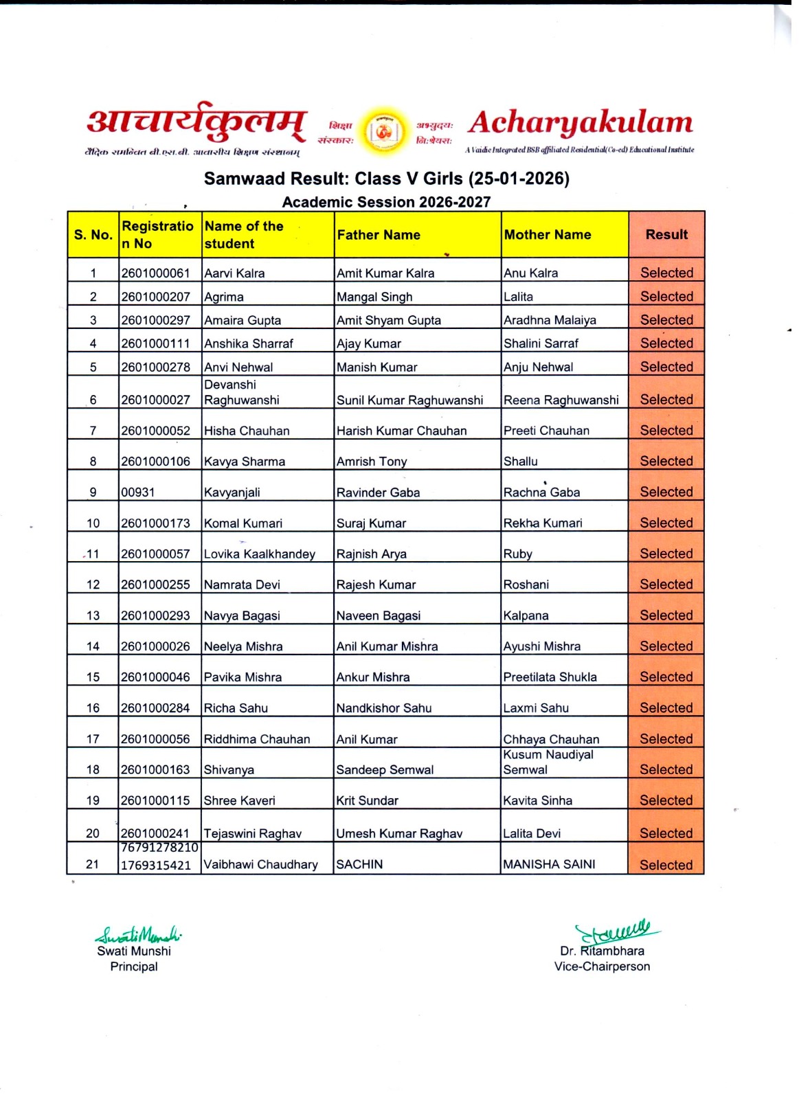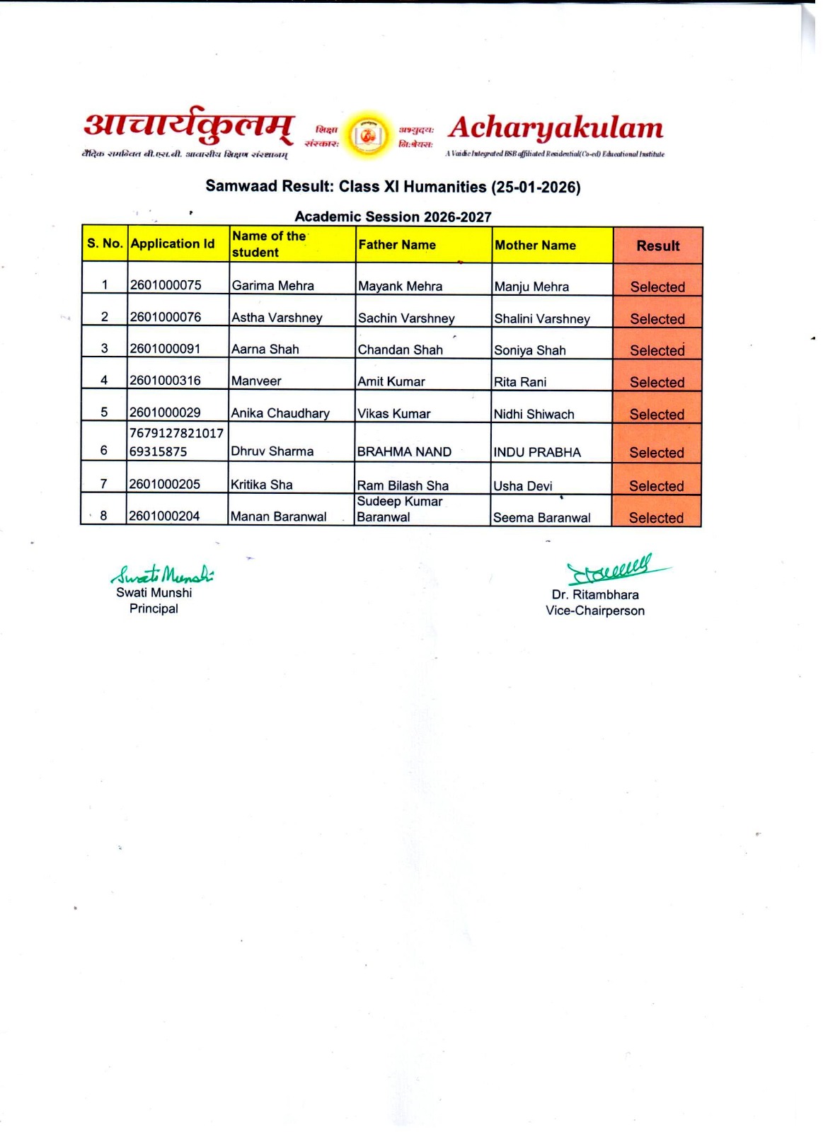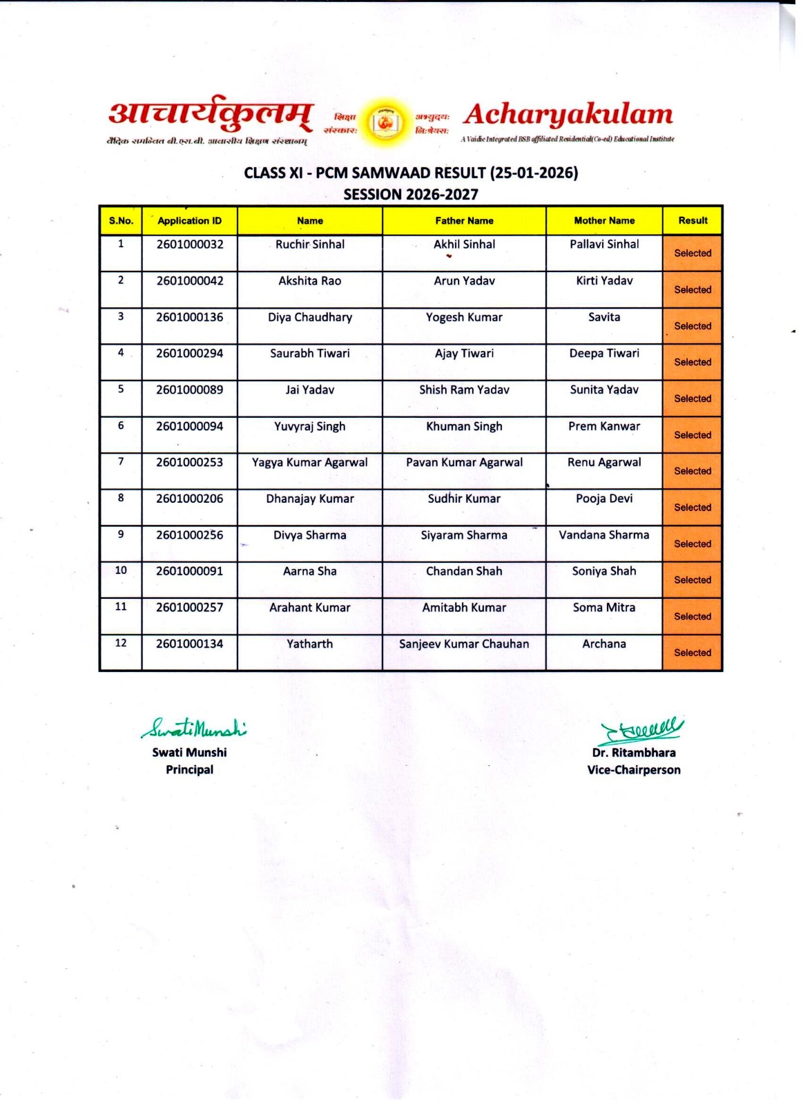 Entrance Exam Result ( 2026-01-25 )