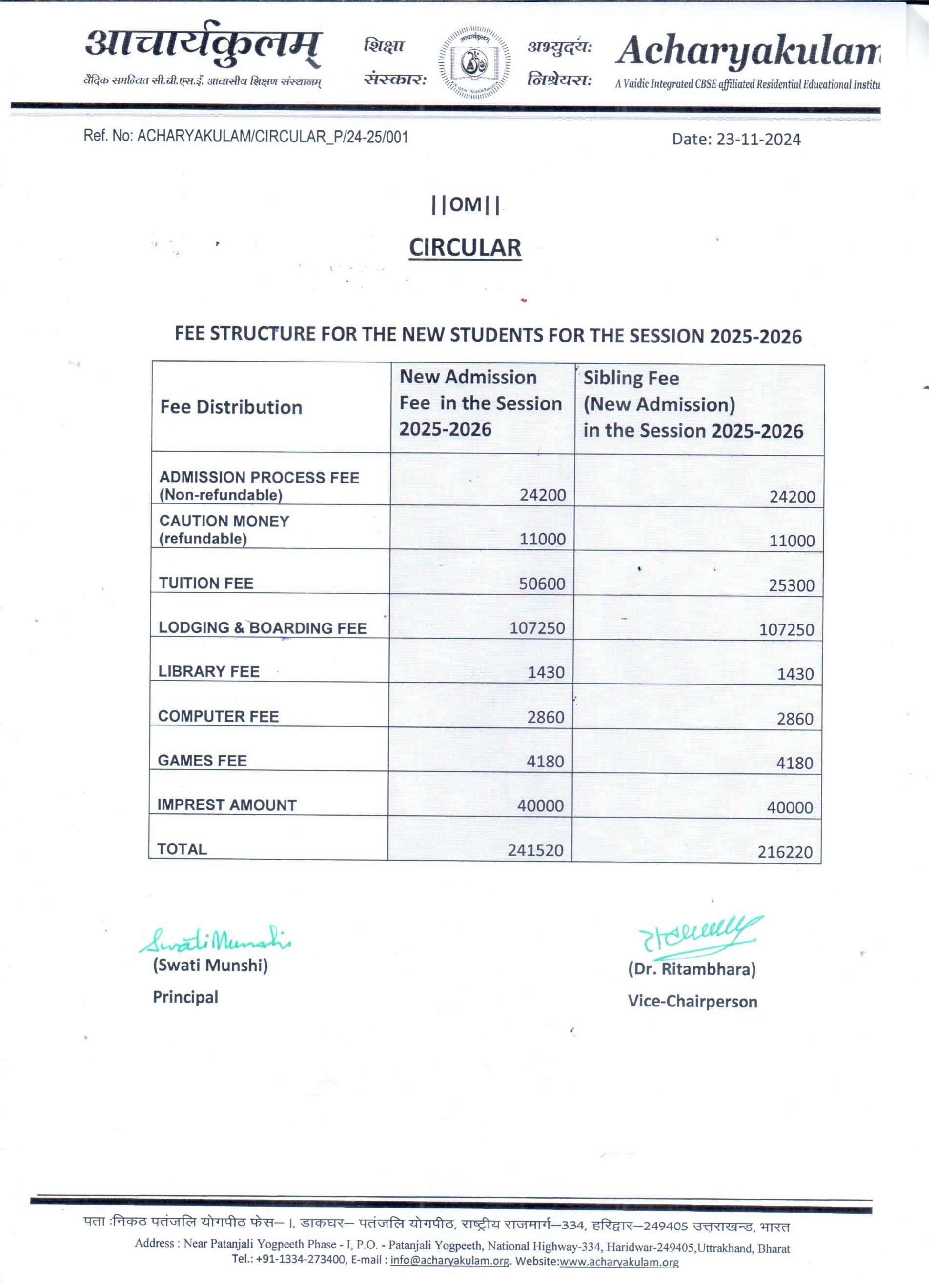 New Admission FeeIn the Session 2026-2027 |